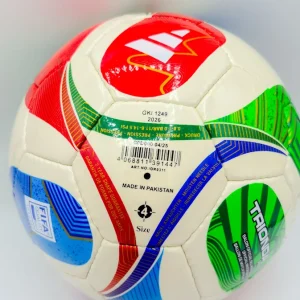 • توپ فوتبال آدیداس (Adidas) طرح جام جهانی ۲۰۲۶ - سایز ۴ (دوختی/زرنگ)