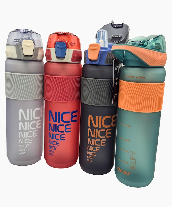 قمقمه ورزشی ایون (EYUN) مدل NICE ظرفیت 1000 میلی لیتر | نیدار با دور سیلیکونی (درب قفلدار + دستگیره)