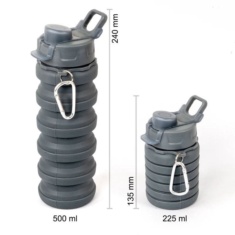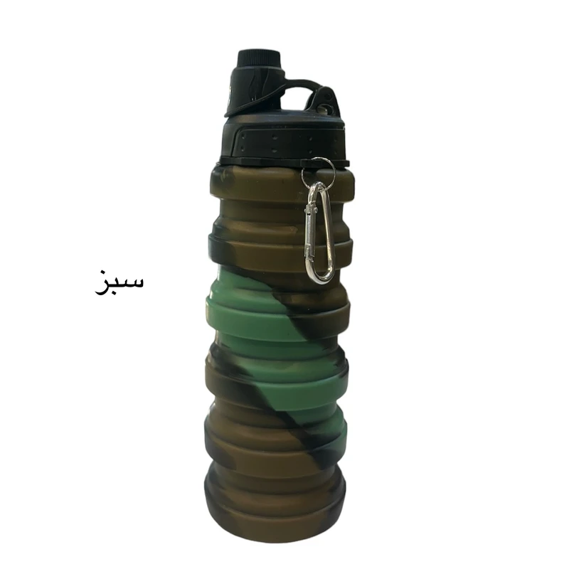 قمقمه سیلیکونی تاشو ۵۰۰ میلی‌لیتری – گیره دار و مقاوم در برابر ضربه
