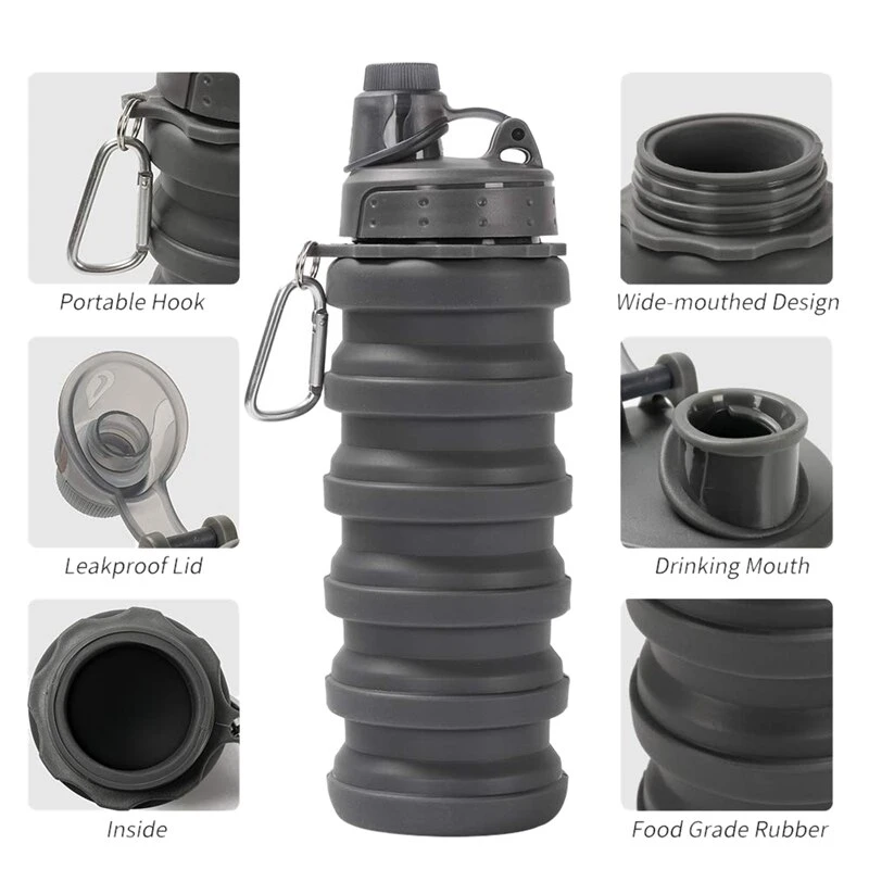 • قمقمه سیلیکونی تاشو یک انتخاب عالی برای ورزشکاران، افرادی که به دنبال قمقمه‌ای سبک و کم حجم هستند و به راحتی قابل حمل است. این قمقمه با گنجایش ۵۰۰ میلی‌لیتر و جنس سیلیکونی مقاوم برای نگهداری مایعات و نوشیدنی‌های ورزشی طراحی شده است.