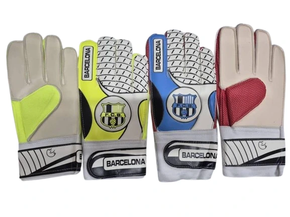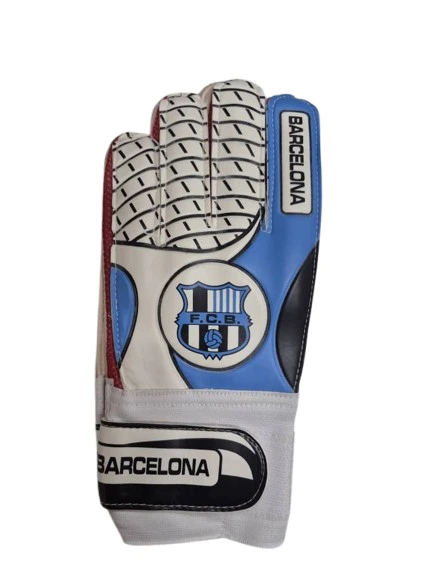 دستکش دروازه‌بانی بزرگسالان طرح بارسلونا – چرم مصنوعی و فوم با فنر محافظ انگشتان
