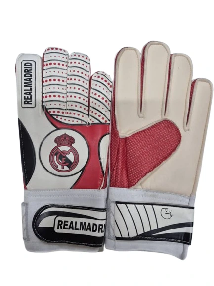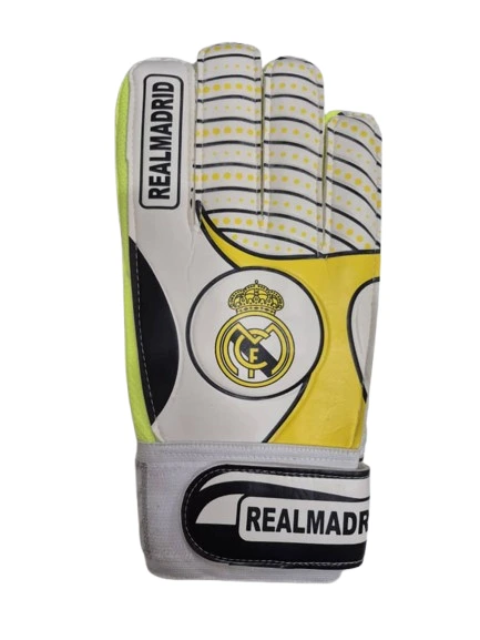 دستکش دروازه‌بانی بزرگسالان طرح رئال مادرید – چرم مصنوعی و فوم با فنر محافظ انگشتان