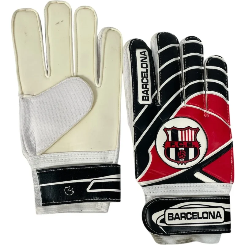 دستکش دروازه‌بانی پسرانه طرح بارسلونا – چرم مصنوعی و فوم با فنر محافظ انگشتان