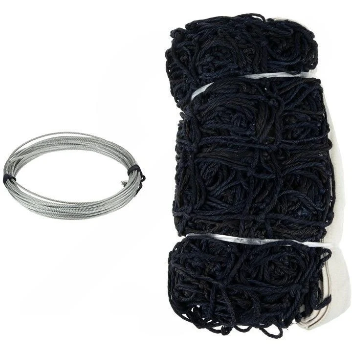 مهم‌ترین ویژگی این تور، وجود یک کابل فلزی (سیم بکسل) مستحکم است که از داخل نوار بالایی عبور می‌کند. این کابل به شما اجازه می‌دهد تور را با حداکثر کشش و بدون افتادگی بین دو تیرک نصب کنید و ارتفاع استاندارد آن را در تمام طول بازی حفظ کنید.