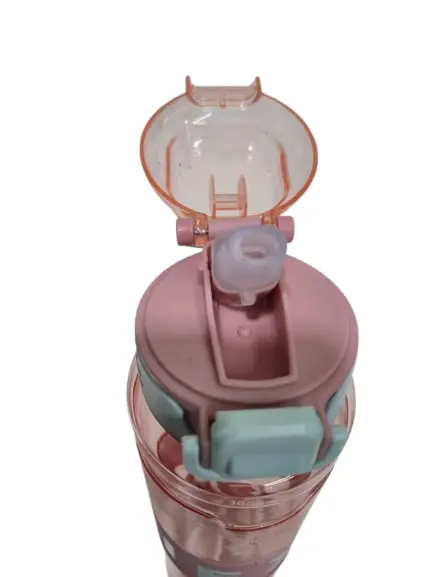 - سیستم نوشیدن آسان: با فشردن یک دکمه، درب محافظ باز شده و لبی سیلیکونی نرمی که به نی داخلی متصل است، نمایان میشود. این مکانیزم به شما اجازه میدهد حتی در حال دویدن یا دوچرخهسواری به راحتی آب بنوشید.