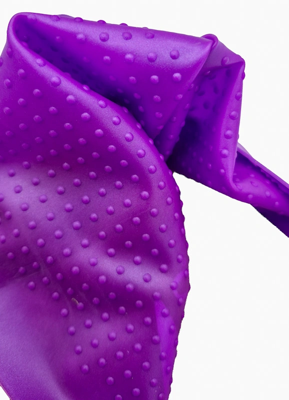همانطور که در تصاویر پیداست، سطح این کلاه دارای برجستگی‌های ریز و منظمی است. این بافت پفکی باعث می‌شود سطح تماس مستقیم کلاه با موها کاهش یابد؛ در نتیجه پوشیدن و درآوردن کلاه بسیار آسان‌تر شده و از کنده‌شدن یا گره خوردن موها جلوگیری می‌کند. همچنین این طراحی اصطکاک آب را کاهش داده و سرعت شناگر را بهبود می‌بخشد.