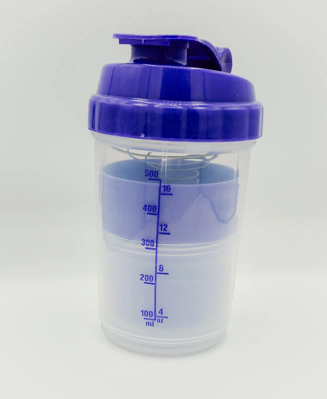 سیستم ۳ تکه (All-in-One): این شیکر علاوه بر مخزن اصلی ۵۰۰ میلیلیتری، دارای دو بخش اضافی است که به انتهای بطری متصل میشوند: