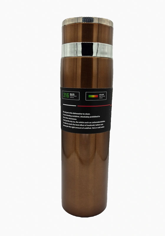 بدنه این محصول در رنگ‌های متالیک جذاب (برنزی و استیل مات) طراحی شده است. یک بند دستی مقاوم به گردنی فلاسک متصل است که حمل آن را بدون نیاز به کیف ممکن می‌سازد. درب پیچی آن کاملاً آب‌بندی شده و نگرانی از بابت نشت مایعات نخواهید داشت.